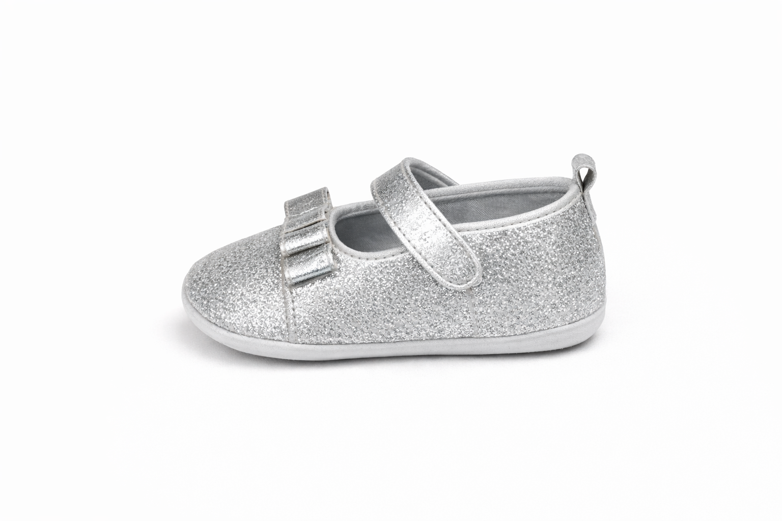 Cute Baby Girl Glitter Big Bow Shoes – Soft & Elegant - Silver